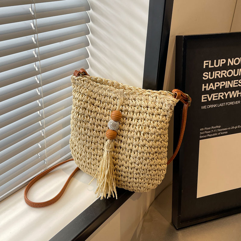 编织小包包女海边度假出游单肩水桶草编包新款夏季手机斜挎包