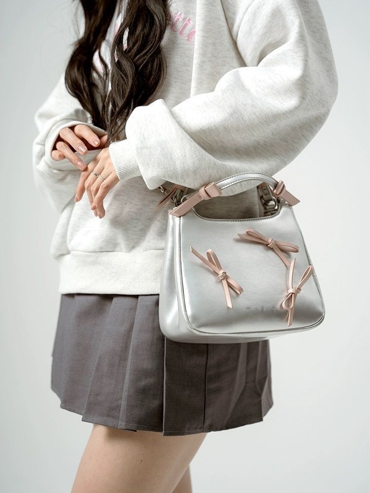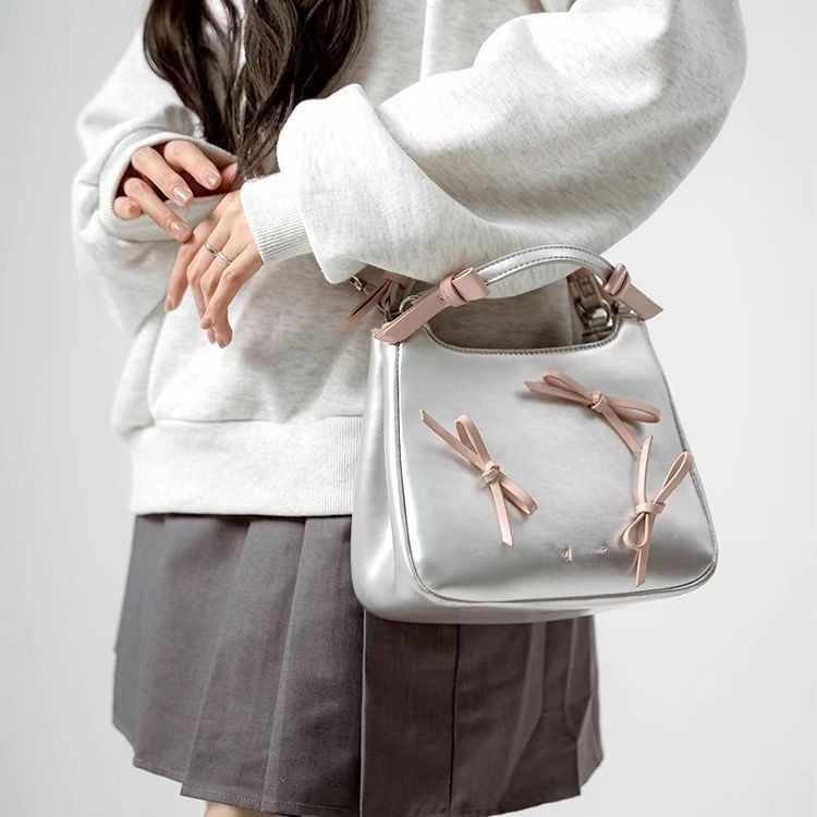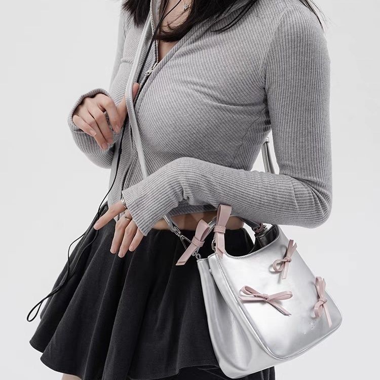 原创芭蕾蝴蝶手提单肩斜挎春夏水桶菜篮包蝴蝶结小众设计高...