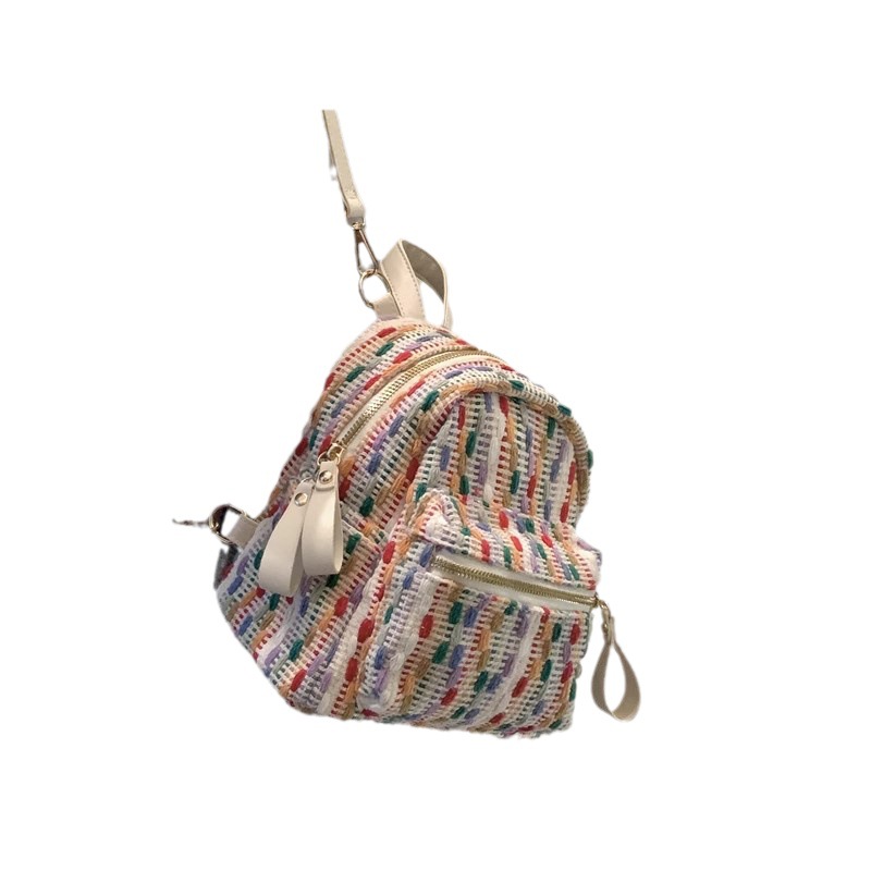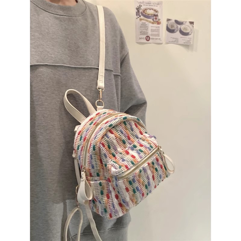彩虹针织网红双肩包春夏新款高级感小众旅行背包时尚迷你小包
