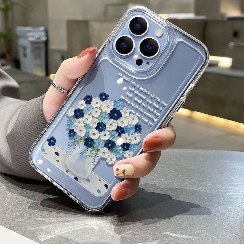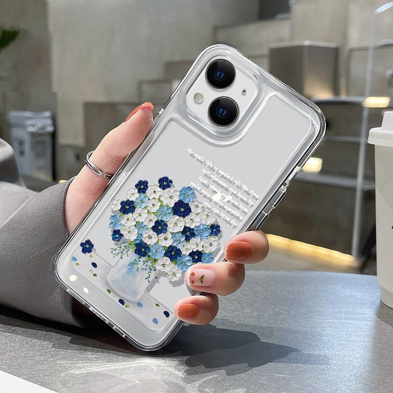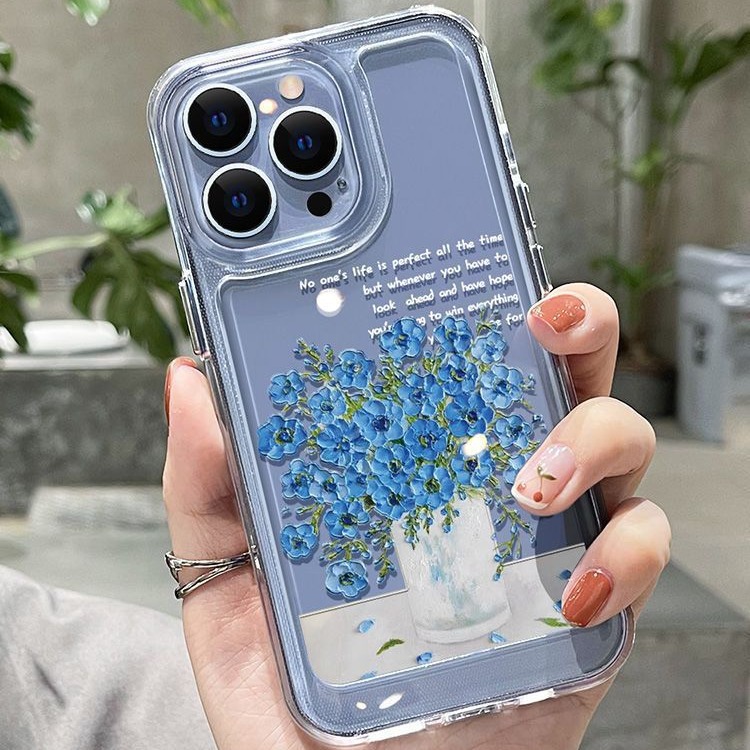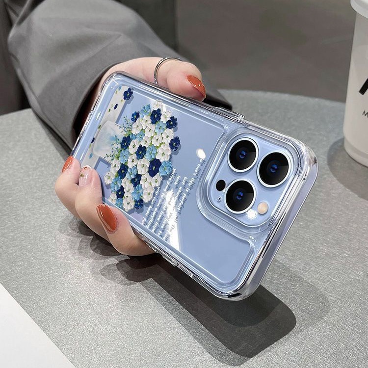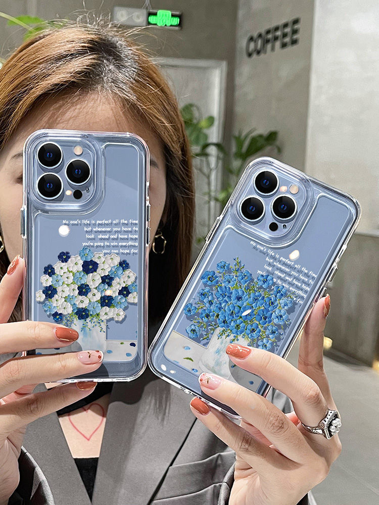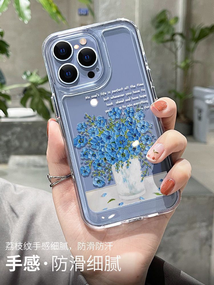 蓝色花束太空壳适用苹果14plus手机壳13/12pro防摔11透明xs软7/8p