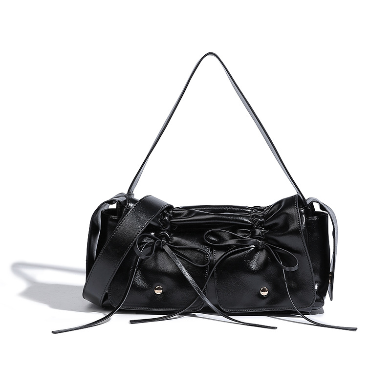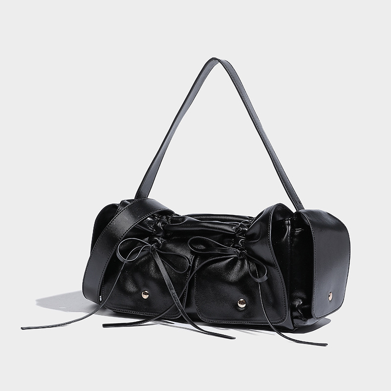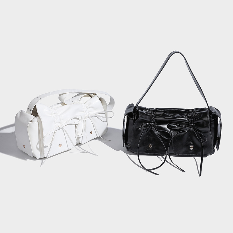 高品质褶皱手提包绑带结饰相机包女新款百搭抽绳单肩斜挎包包