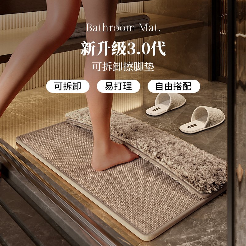 可拆洗浴室门口吸水速干地垫家用卫生间防滑脚踏垫加厚厕所地毯