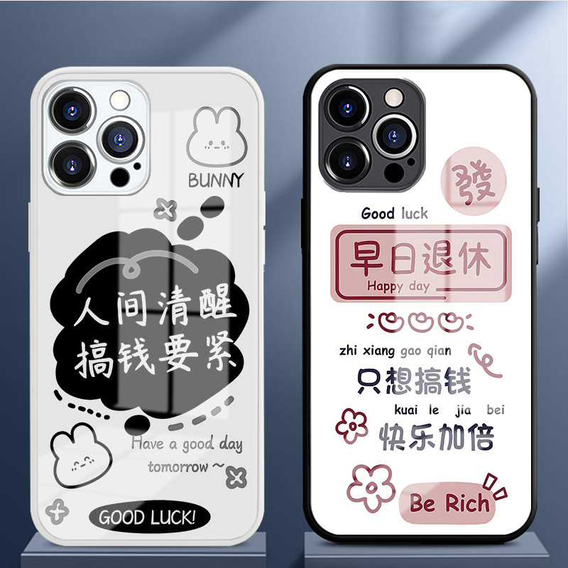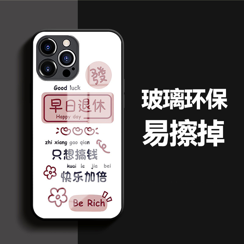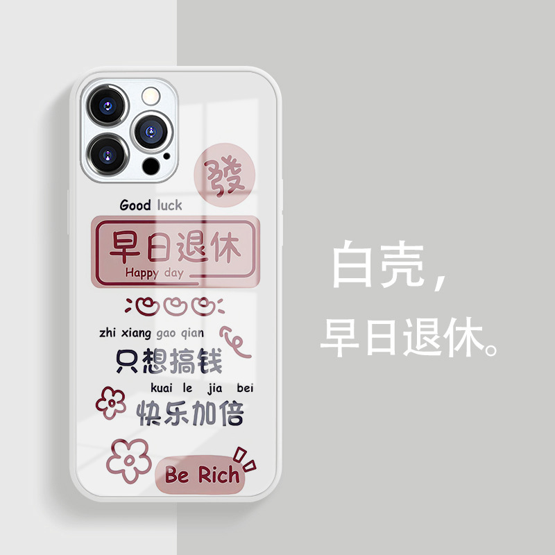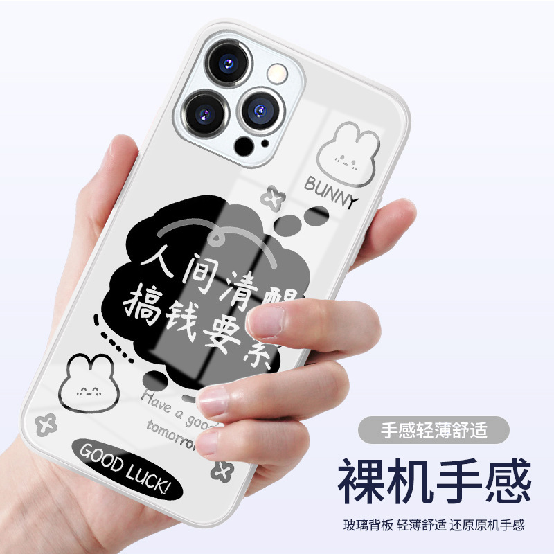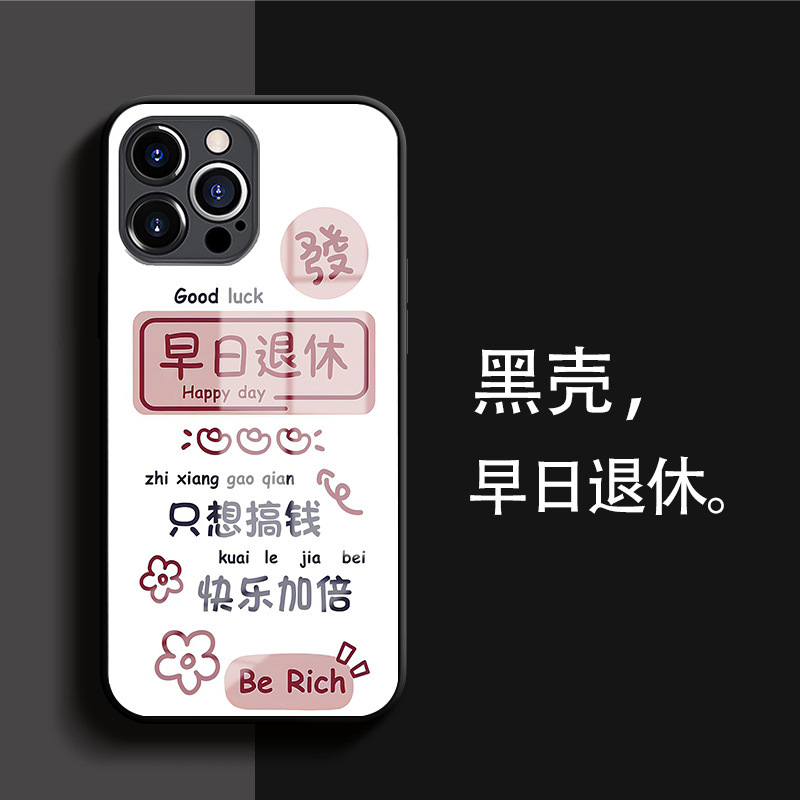 简约上岸手机壳苹果15玻璃壳iPhone14Promax护体13/12全包XS/XR