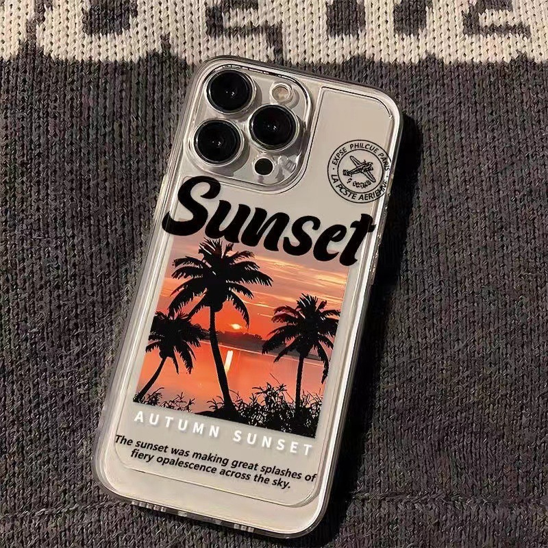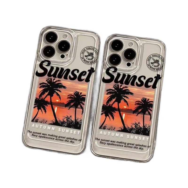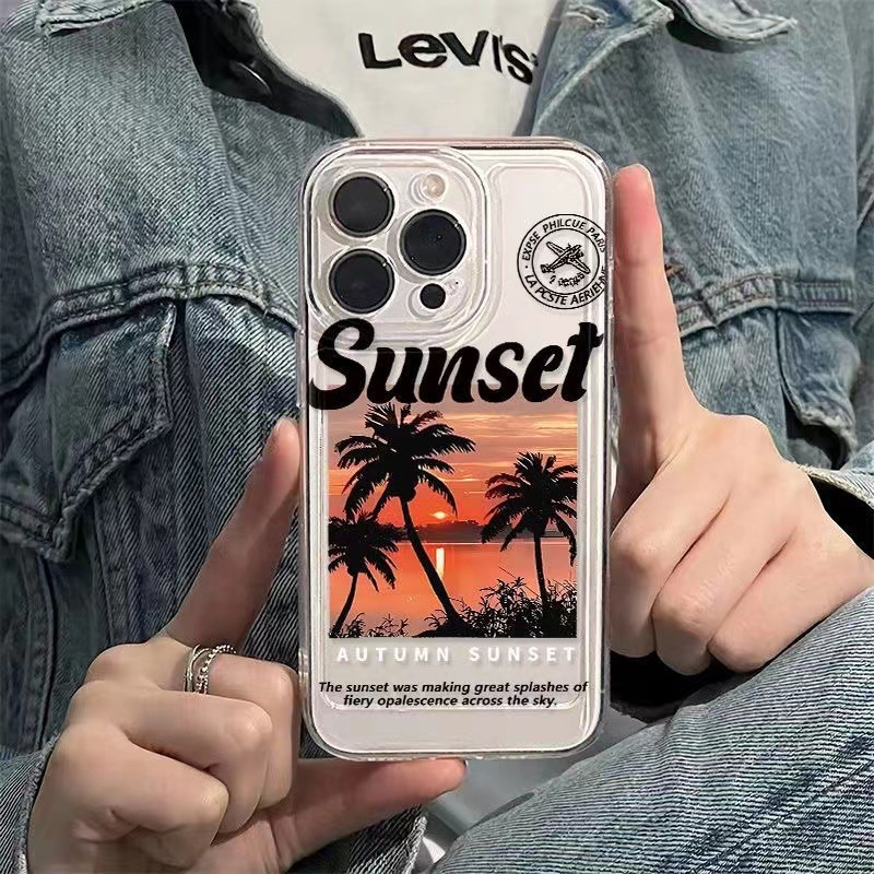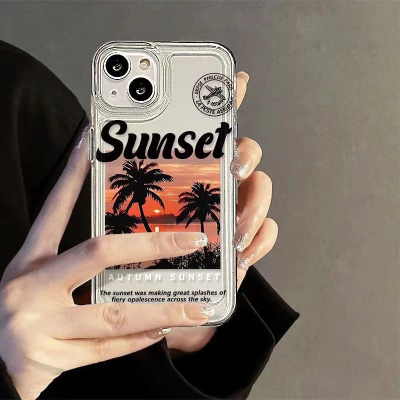 复古椰树日落适用iPhone15promax手机壳12/13透明11pro全包防摔14