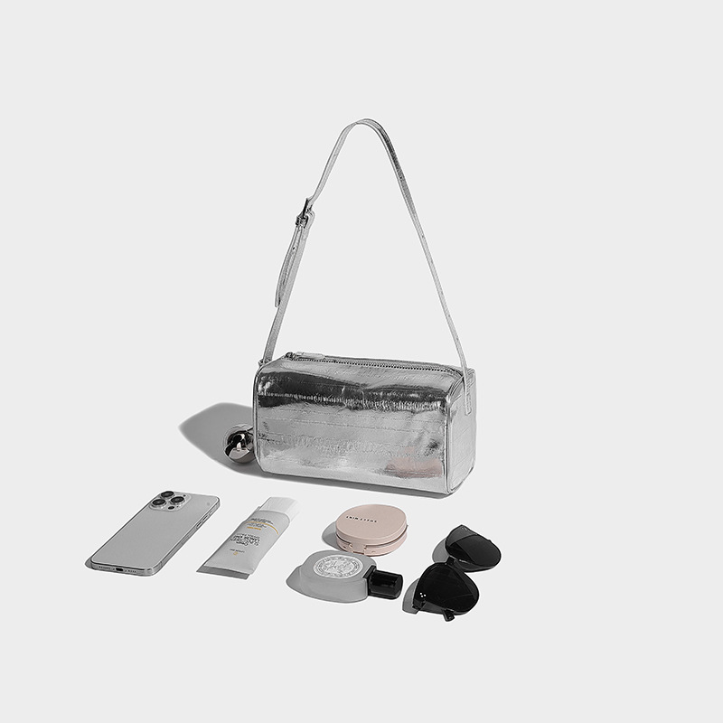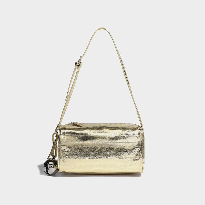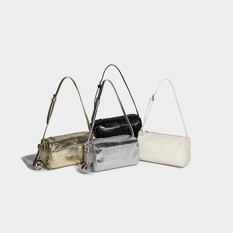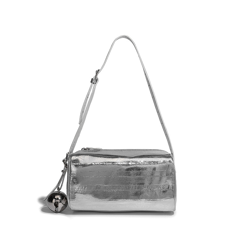 高品质腋下包夏季新款小众设计铃铛圆筒包银色百搭单肩手提包