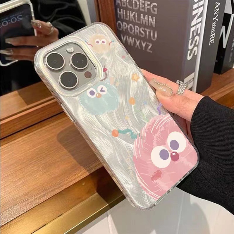 粉色毛球适用苹果14手机壳13promax15pro硬壳镭射11小众xsmax