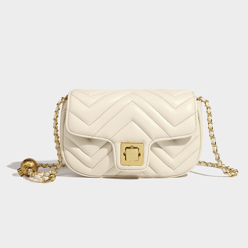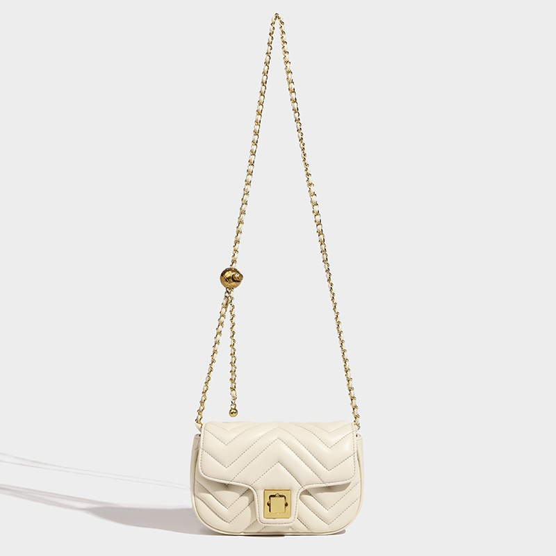绣线褶皱小包包女夏季新款单肩腋下包复古洋气链条斜挎小方包