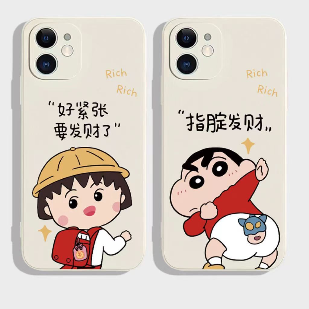 魔方直边情侣款手机壳苹果13/14小丸子适用iPhone15Promax小新