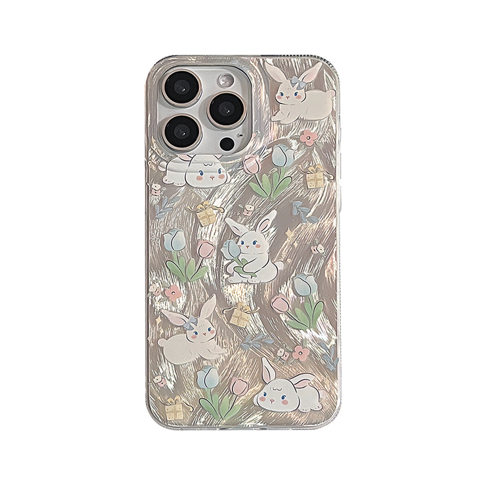 镭射小碎花兔子手机壳适用14苹果15promax小清新iphone13羽纱硬壳