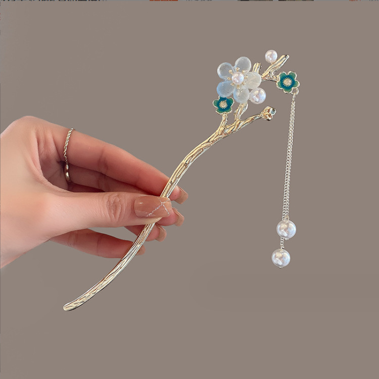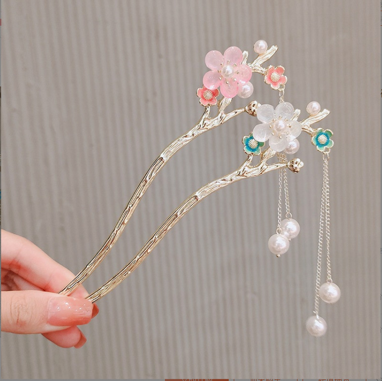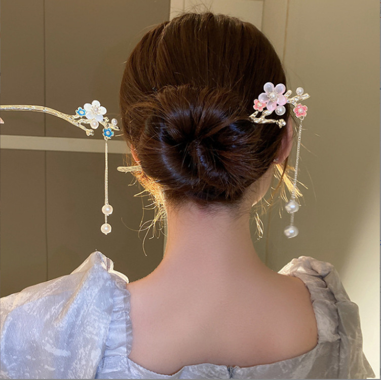 桃花古风步摇发簪高级感古典珍珠汉服簪子发钗流苏旗袍盘发钗子