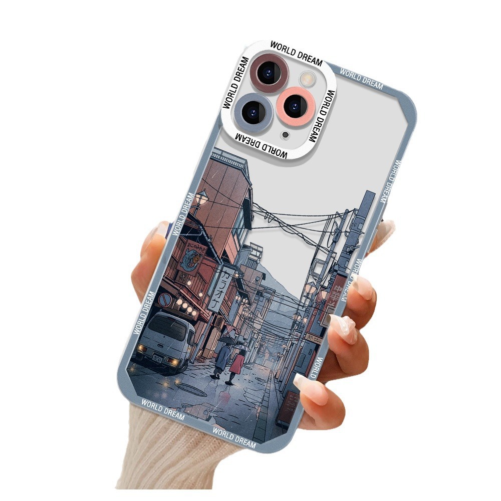 日系唯美插画风景iPhone15手机壳14promax苹果13透明12全包11硅胶