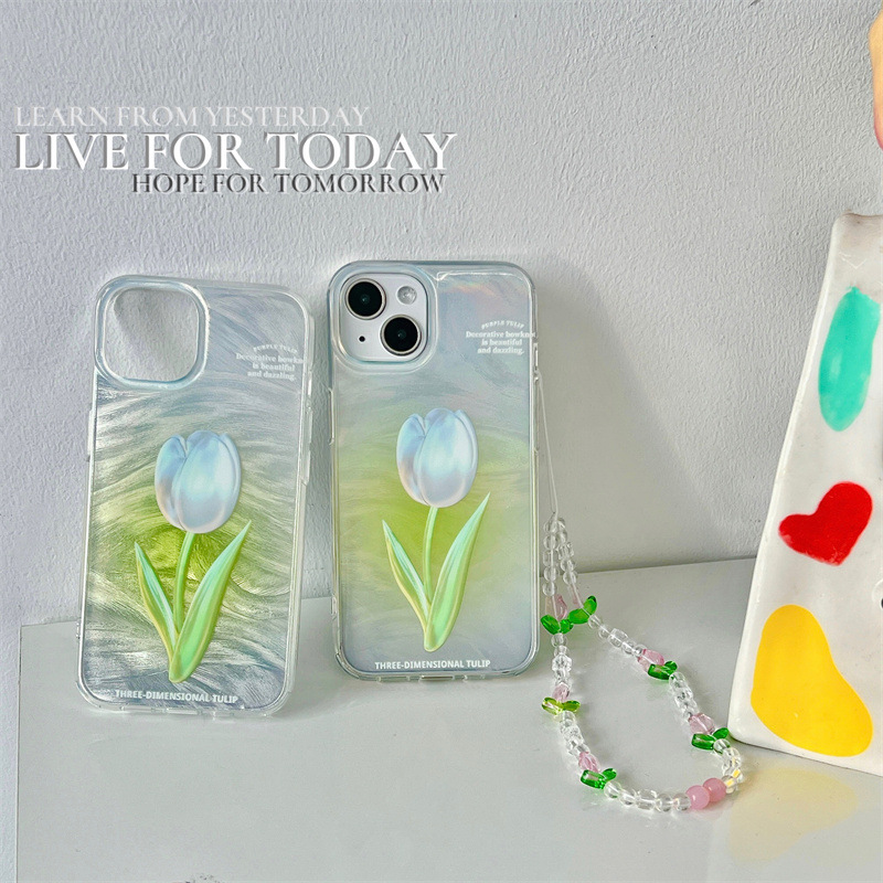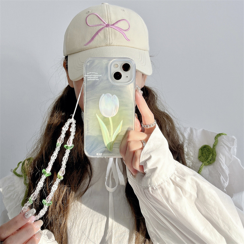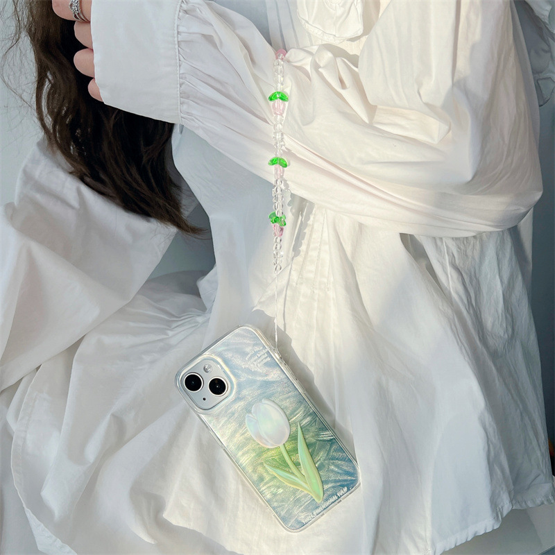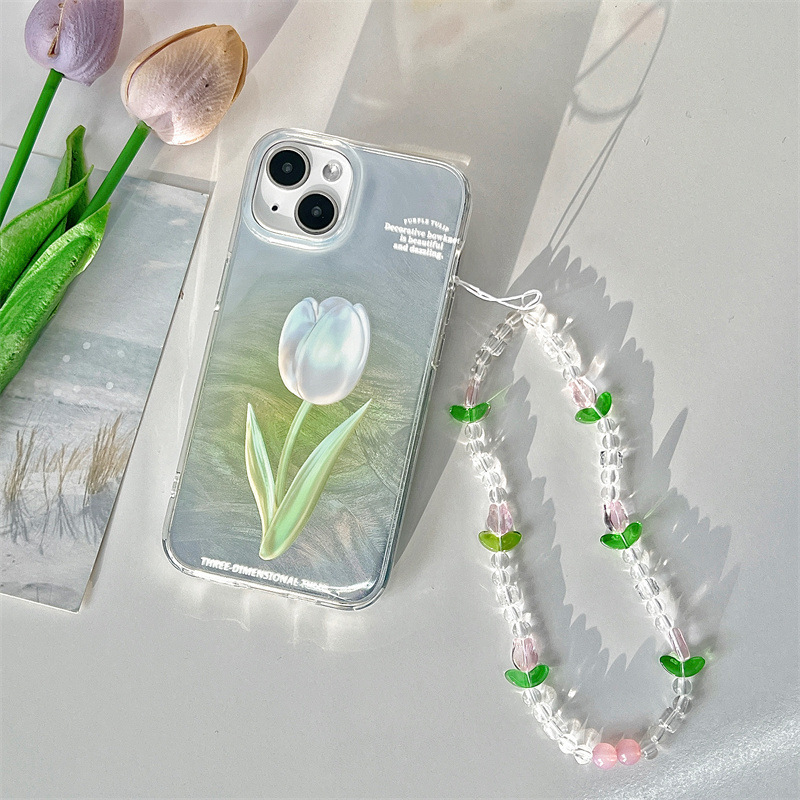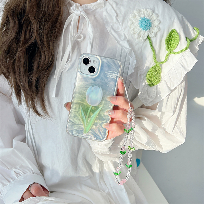 韩风郁金香苹果15promax手机壳适用iPhone14pro手链13/12女11羽纱