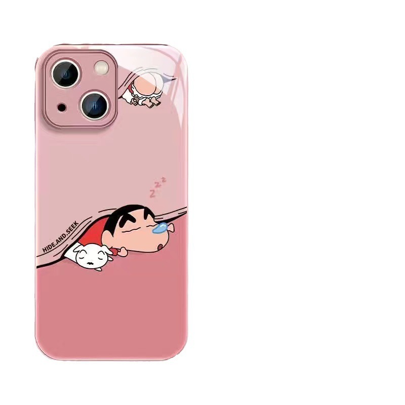 - 【睡觉小新-粉色】金属漆玻璃壳