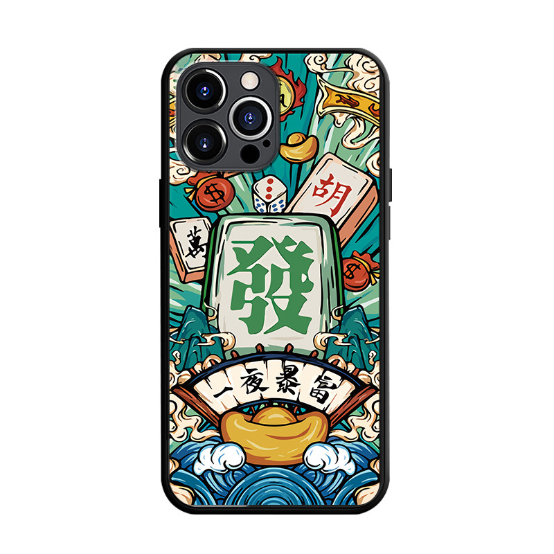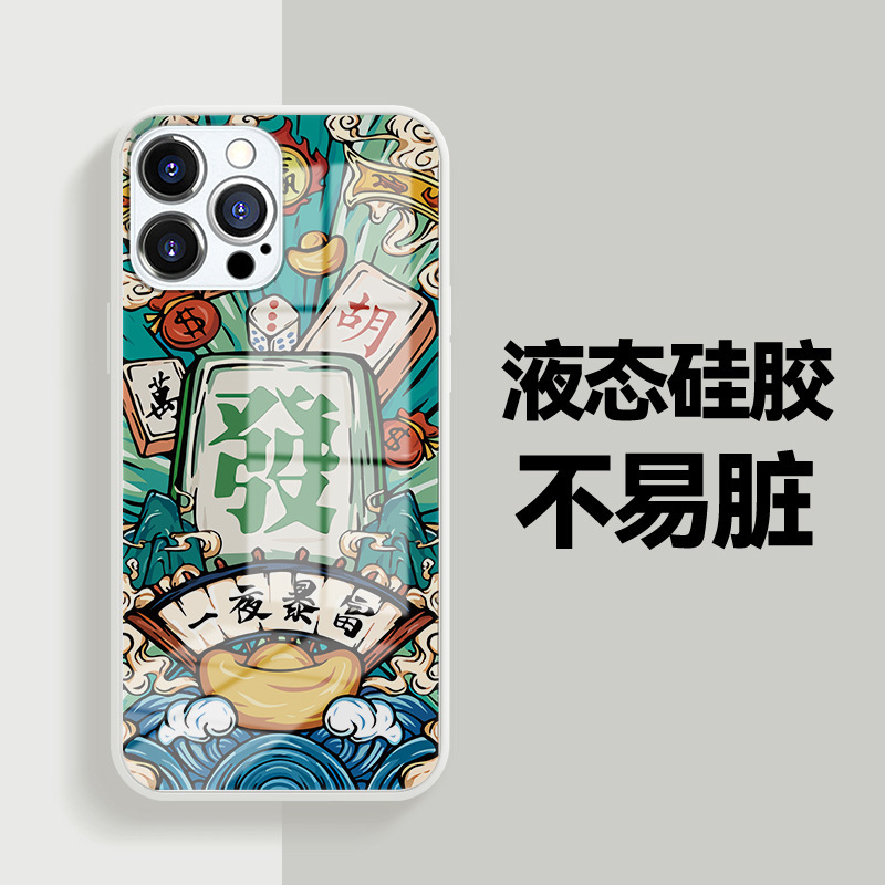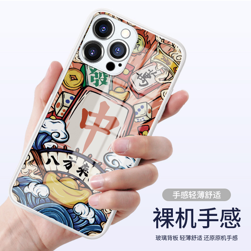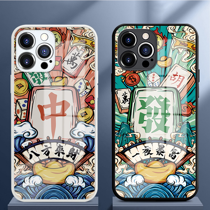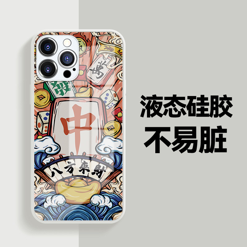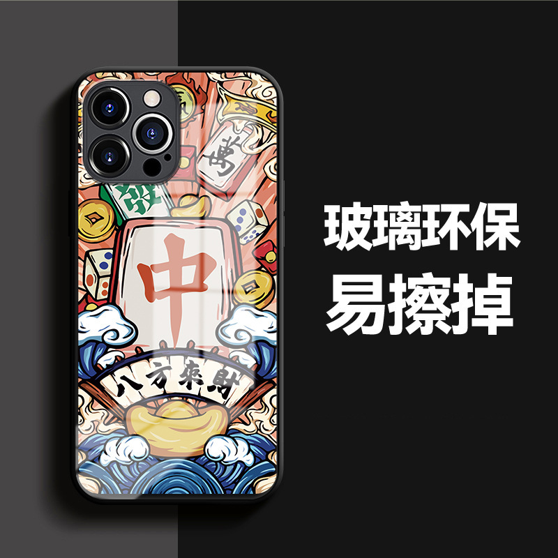 麻将苹果15/14手机壳适用iPhone12/13Promax玻璃11情侣款xr红中8P