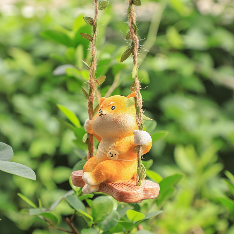 户外庭院阳台花园装饰卡通动物秋千挂件园艺景观布置树脂创意摆件