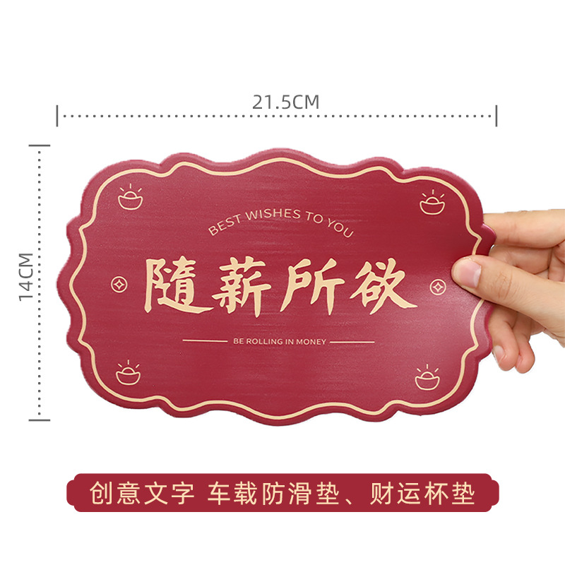 喜庆红色PVC车载防滑垫隔热餐垫汽车中控摆件垫子