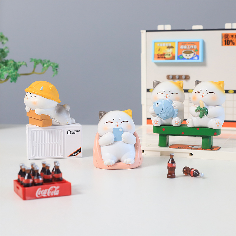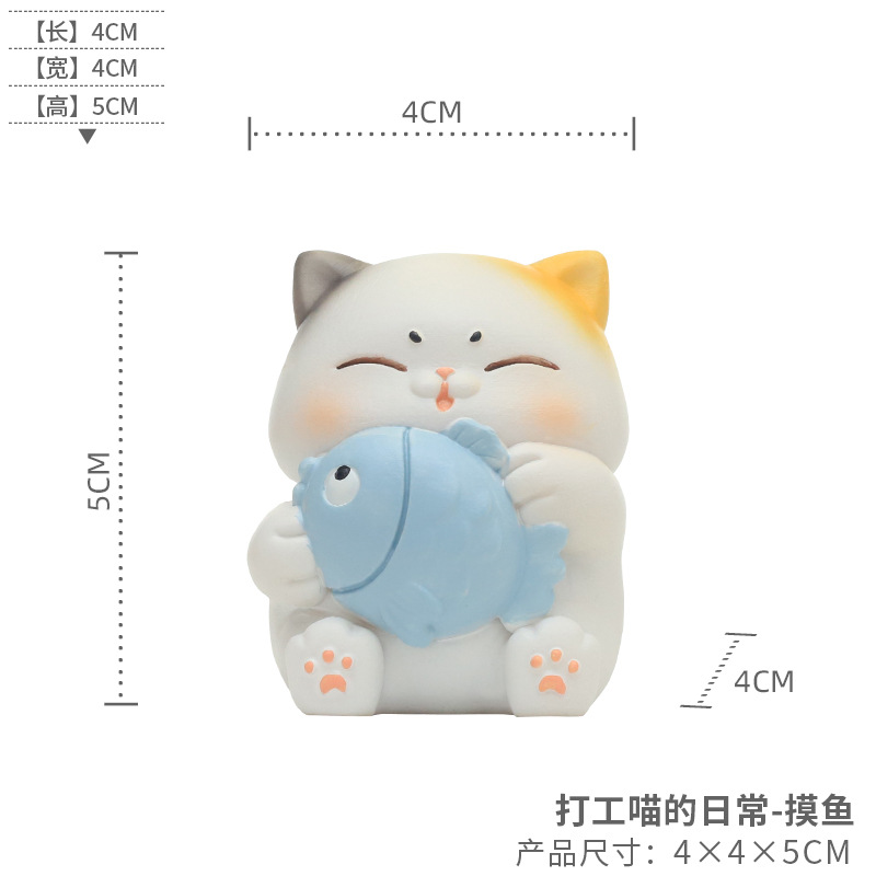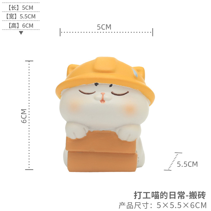 可爱办公室树脂打工小猫公仔装饰摆件创意卡通桌面猫咪小摆件