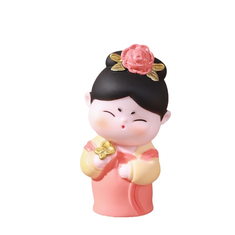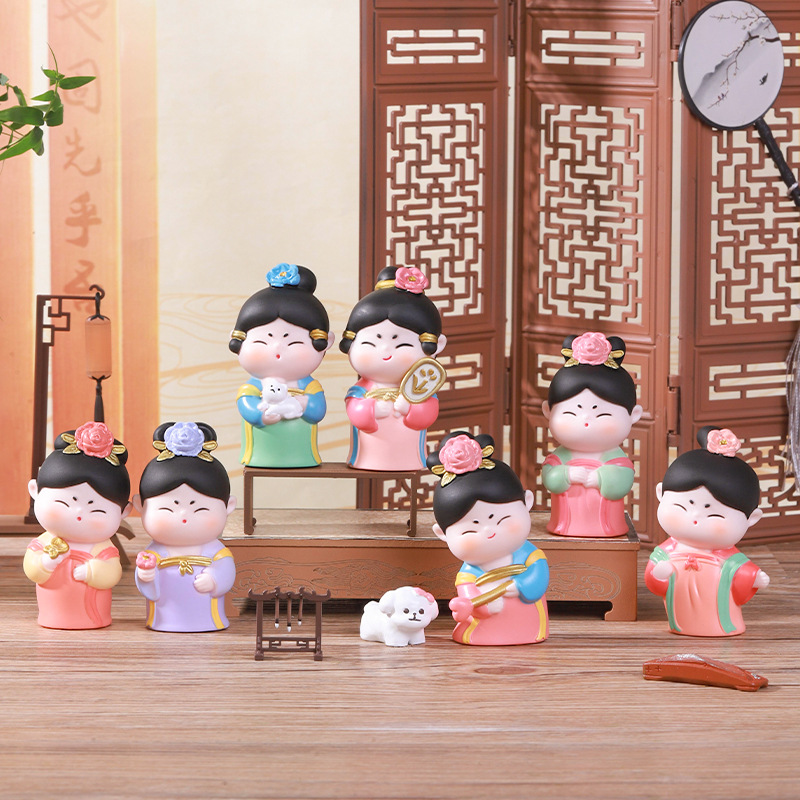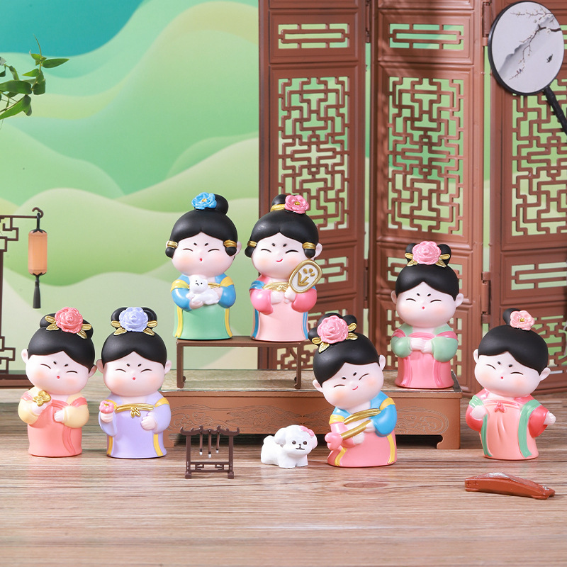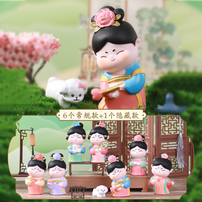 国潮卡通簪花仕女桌面盲盒摆件趣味收藏惊喜古风旅游纪念品伴手礼