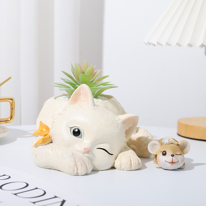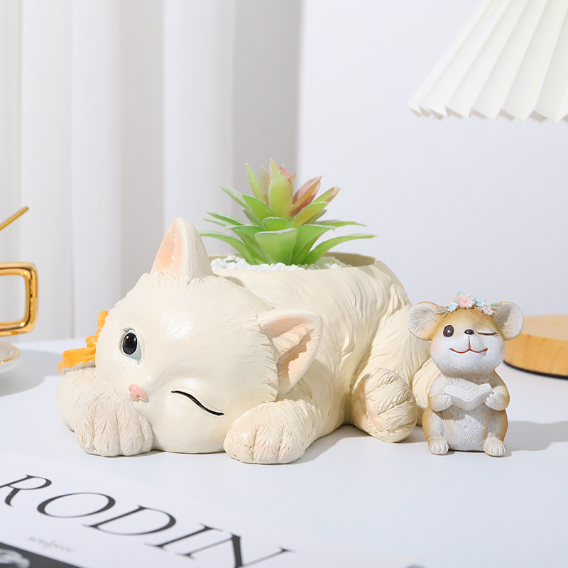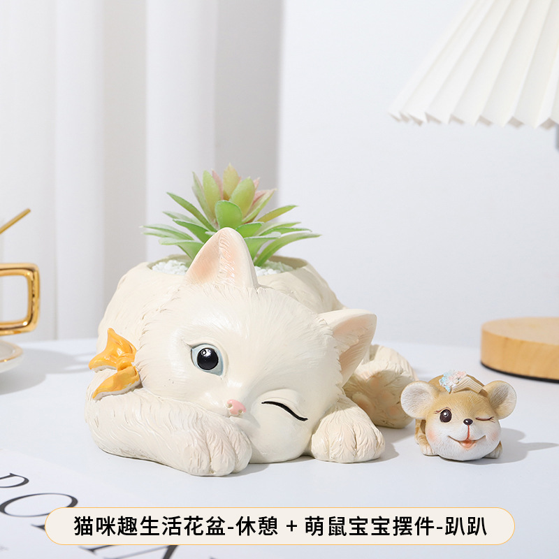 猫咪趣生活花盆-休憩+萌鼠宝宝摆件-站立