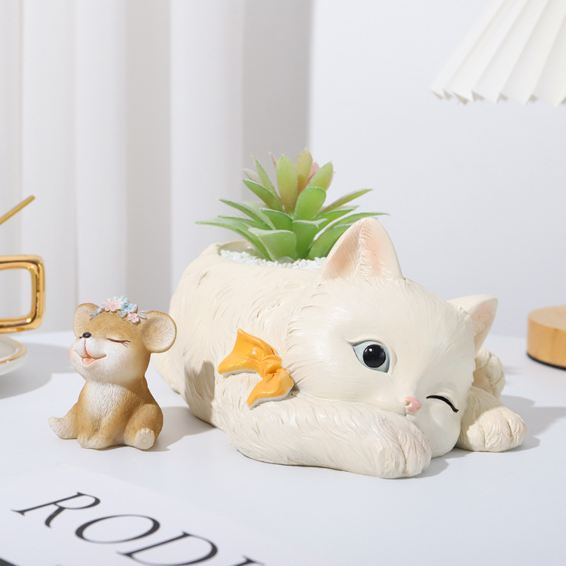 创意树脂趣味卡通猫咪老鼠组合微景观花盆桌面园艺多肉盆栽花器