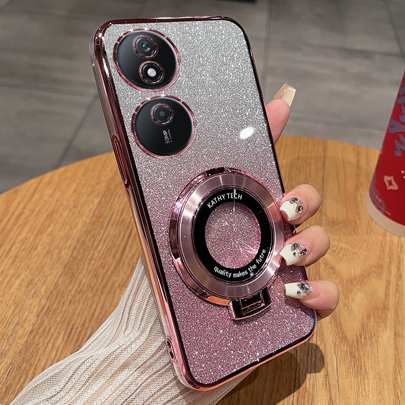 适用荣耀畅玩50plus手机壳电镀透明闪粉磁吸支架全包防摔tpu外壳