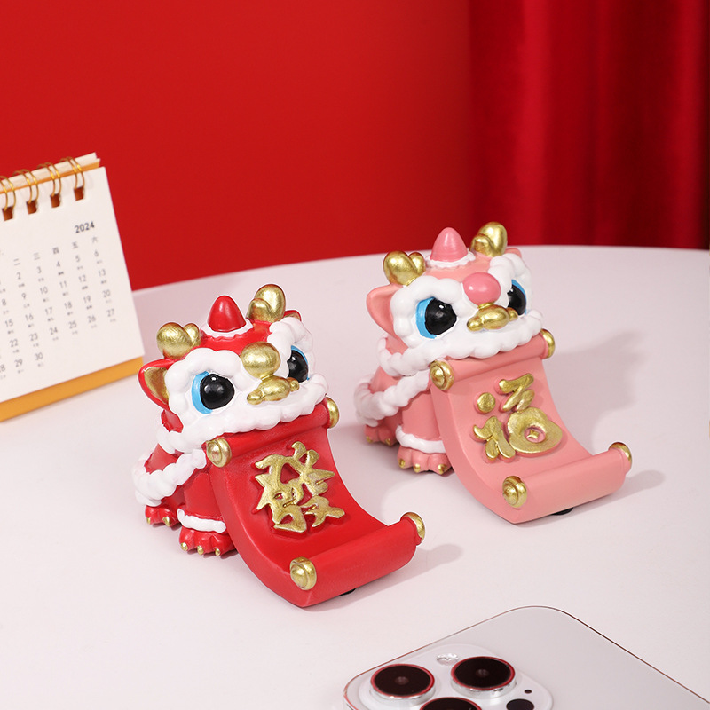 中式新品喜庆舞龙树脂桌面手机支架国潮礼物趣味实用平板支撑架