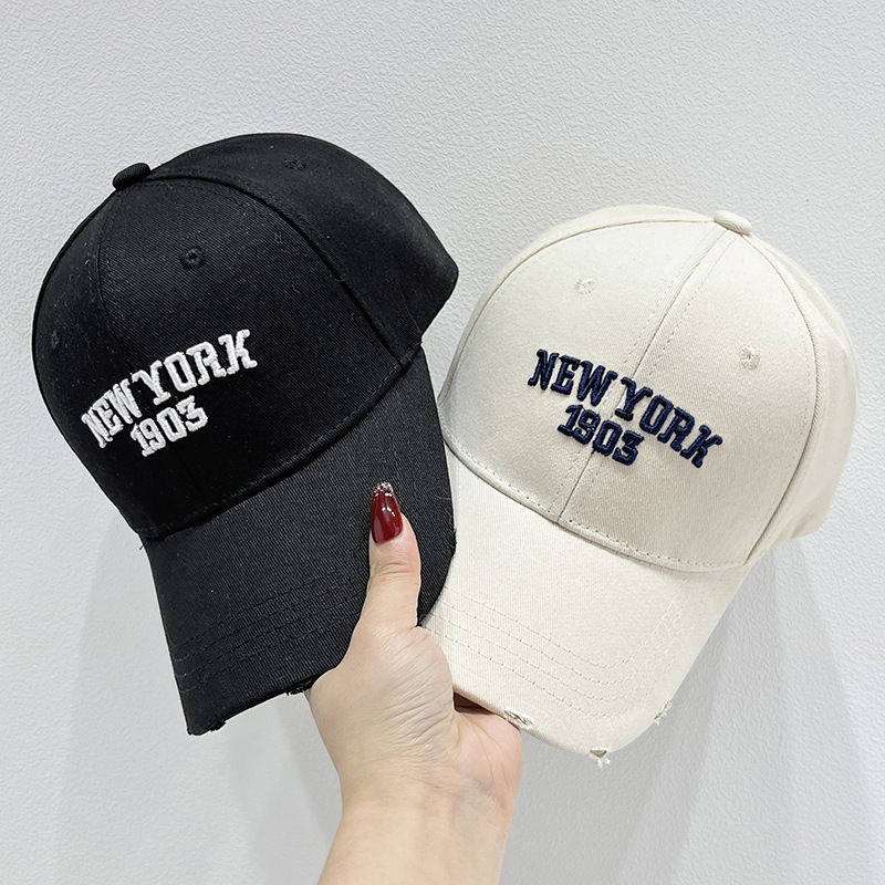 韩版春夏破洞显脸小棒球帽子女百搭字母刺绣深顶硬顶宽檐鸭舌帽男