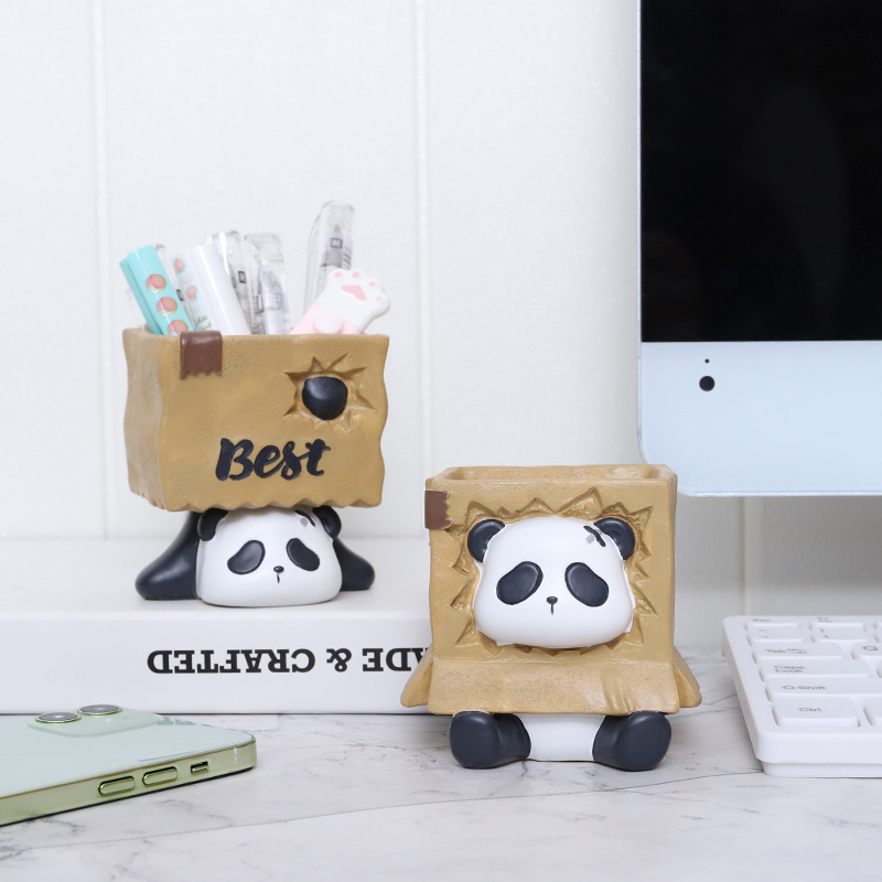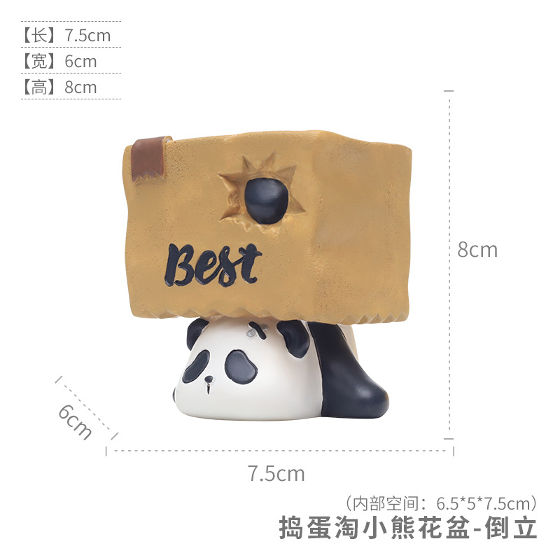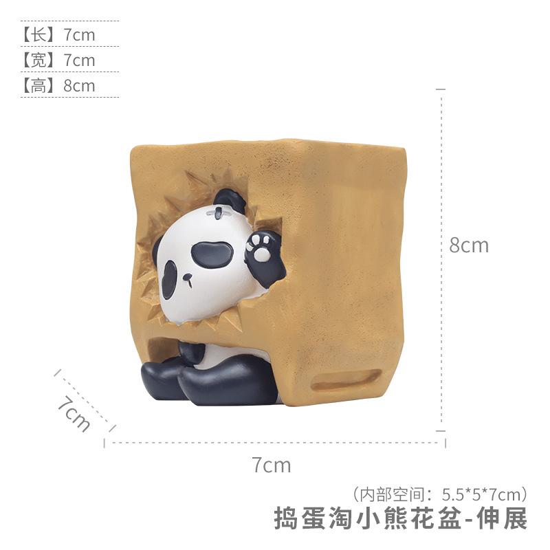 桌面趣味卡通熊猫多肉花盆树脂创意家庭园艺容器花器桌面盆栽