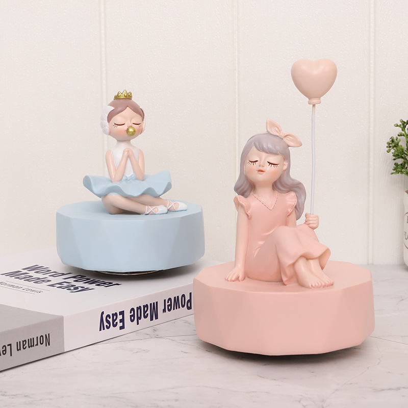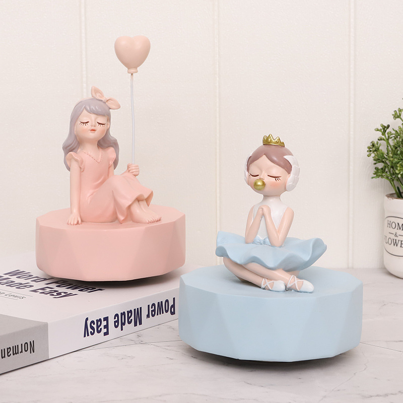 舞蹈女孩八音盒粉色音乐盒摆件树脂创意生日礼物儿童节礼品
