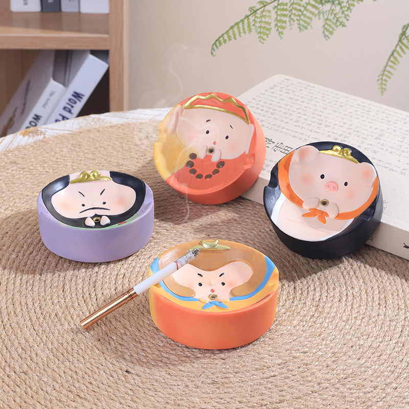 卡通唐僧师徒树脂西游记圆形烟灰缸创意家用香插盘线香底座香台