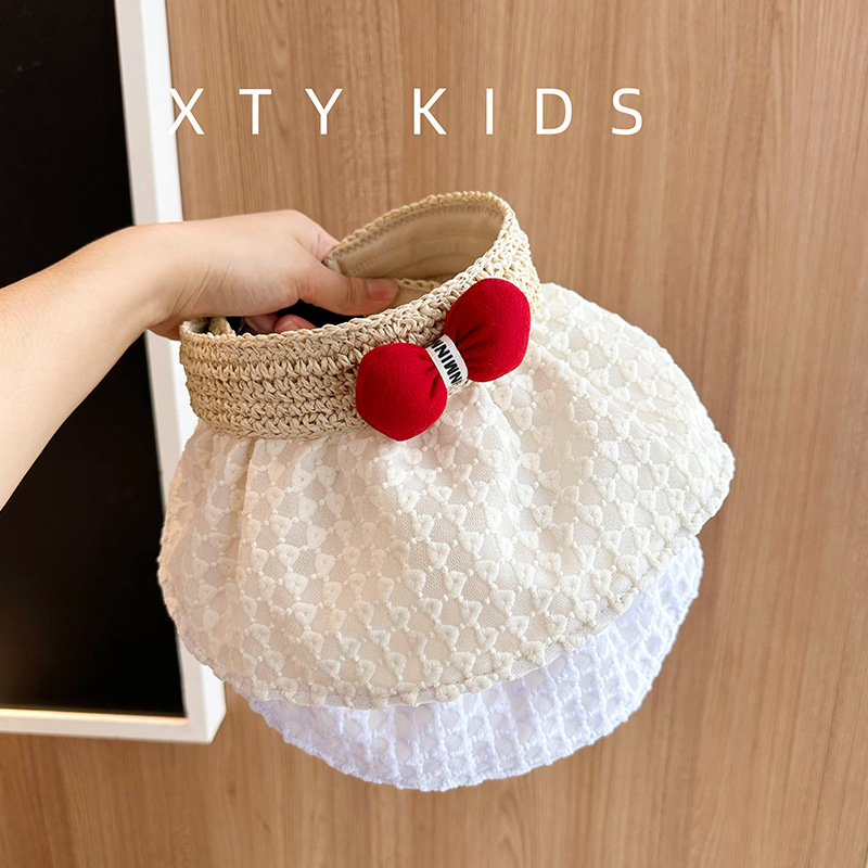 儿童空顶防晒帽夏季大檐洋气蝴蝶结公主户外防紫外线宝宝遮阳帽子