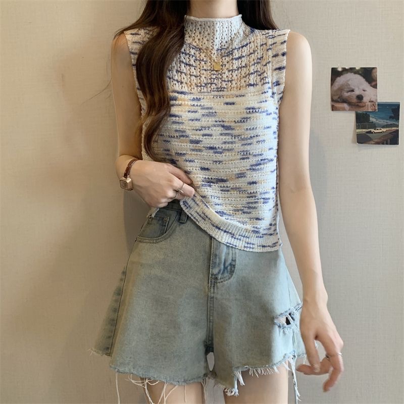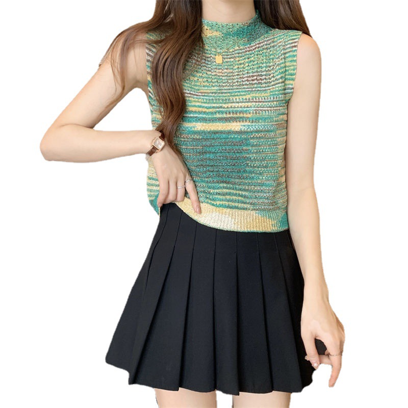 不规则撞色套头圆领针织背心夏季薄款无袖修身百搭甜美短款打底女
