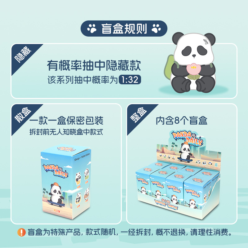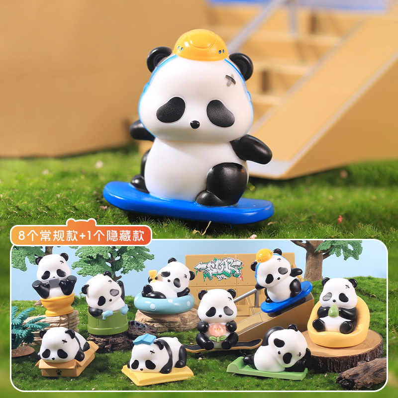 搪胶卡通创意可爱国潮熊猫惊喜收集盲盒旅游收藏纪念品桌面摆件