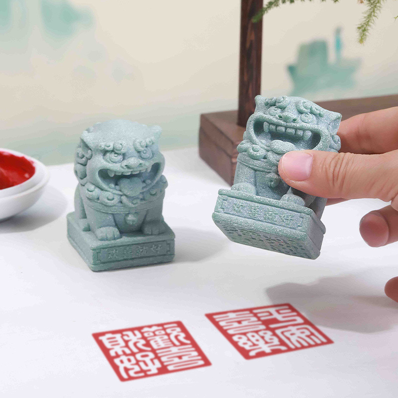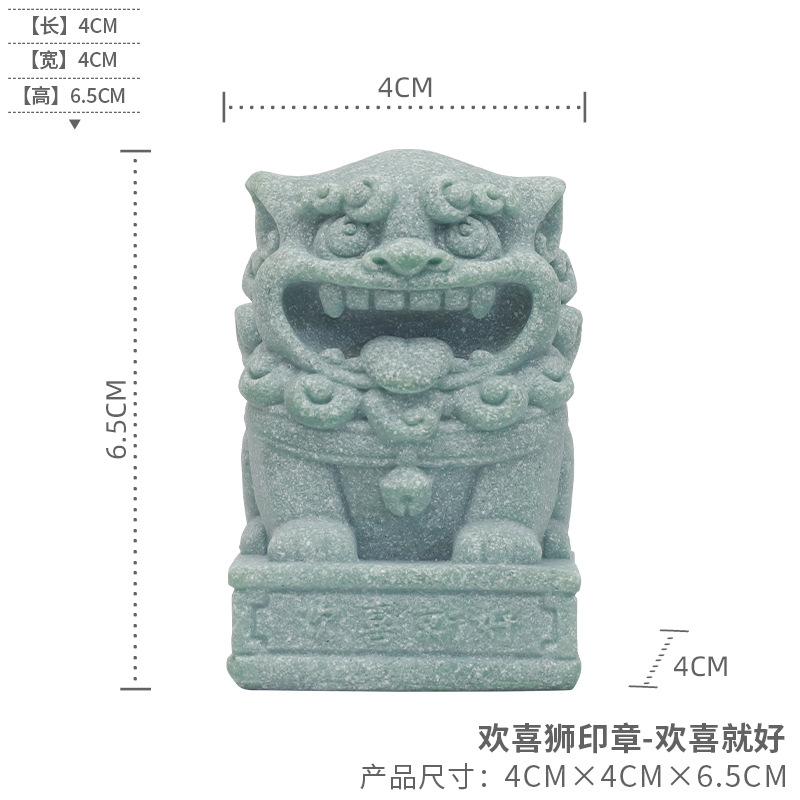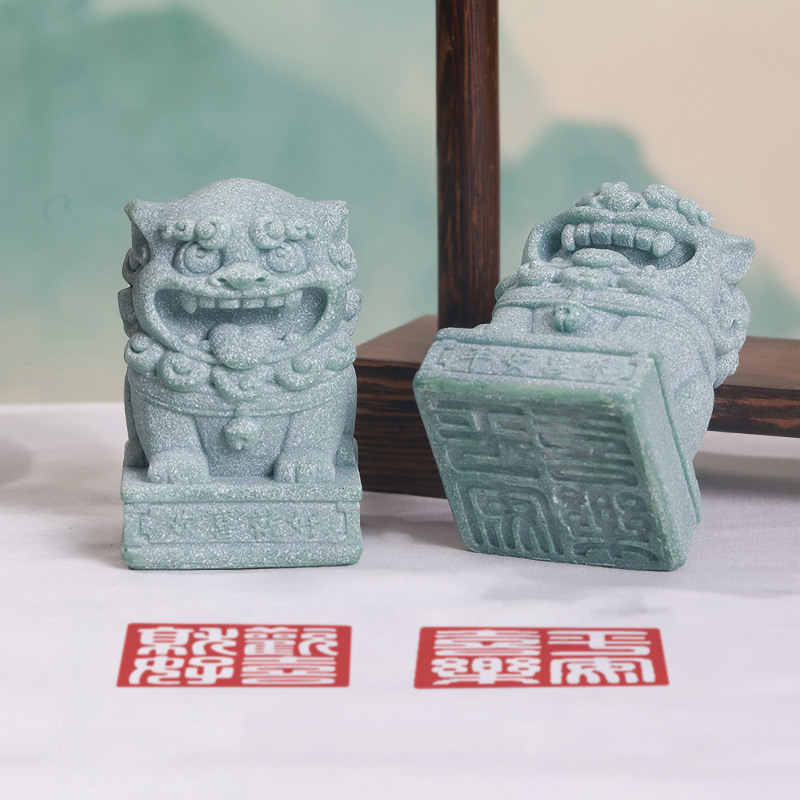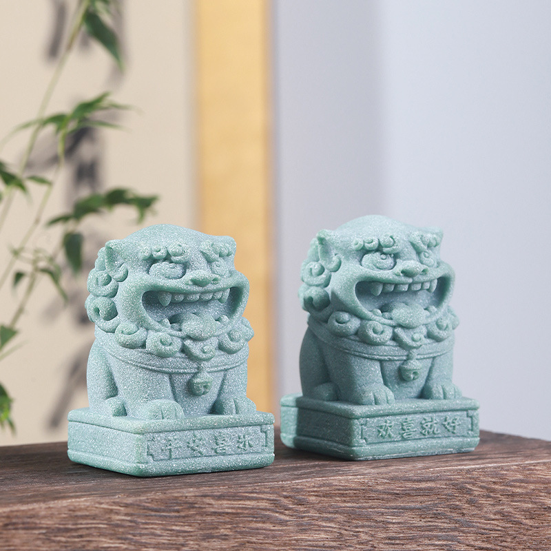中式国潮仿青砂石桌面小狮子茶宠摆件创意吉祥物印章装饰品礼品