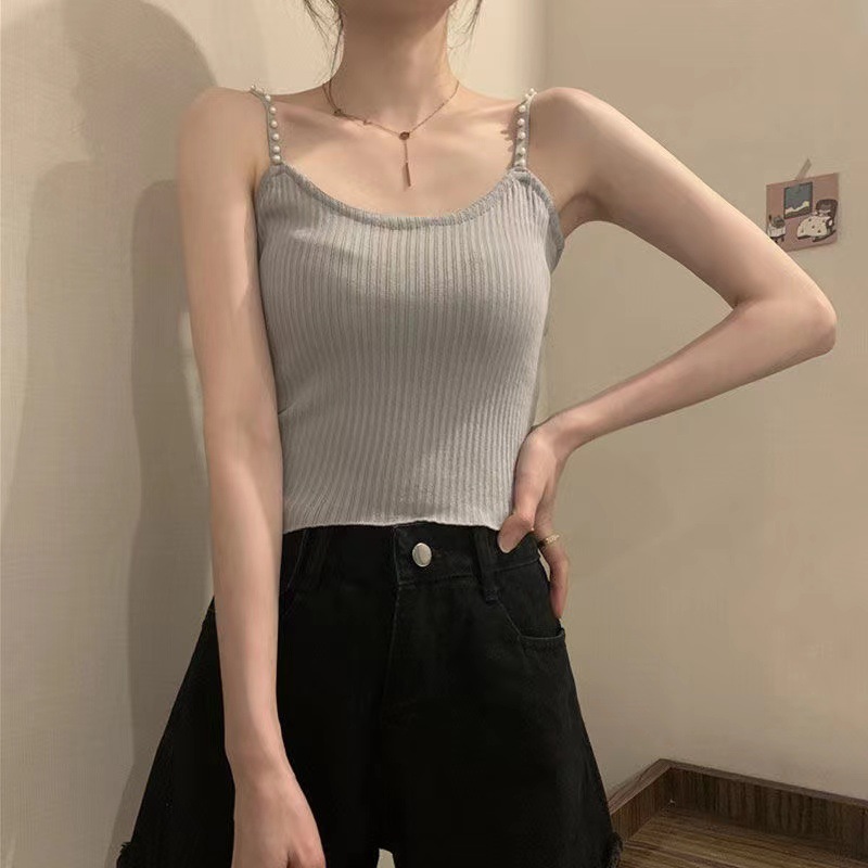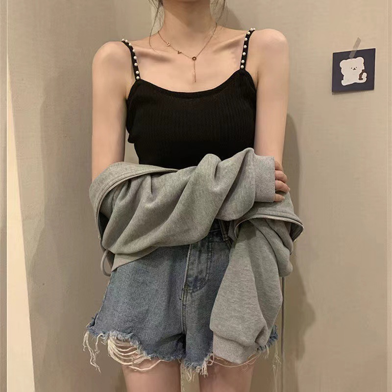 夏季韩版修身百搭黑色小吊带背心女学生甜美显瘦针织短款上衣女潮