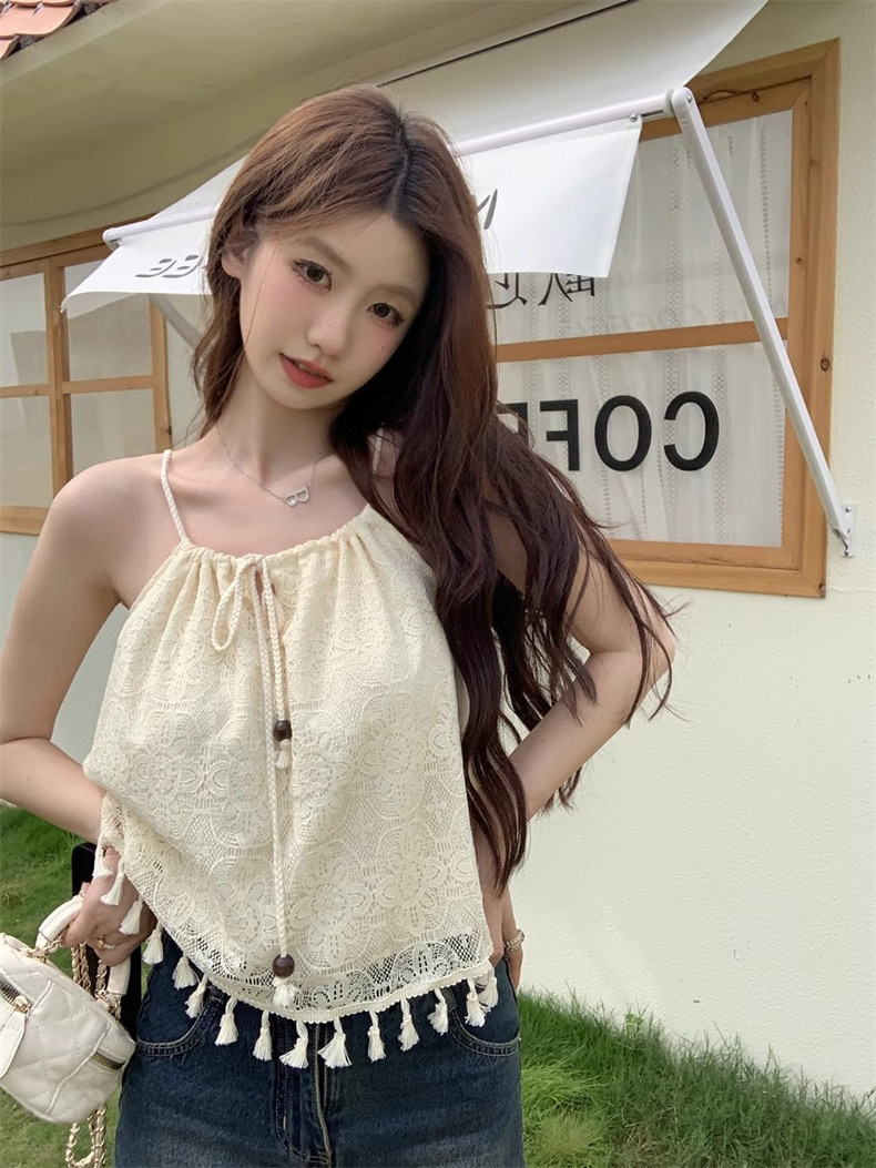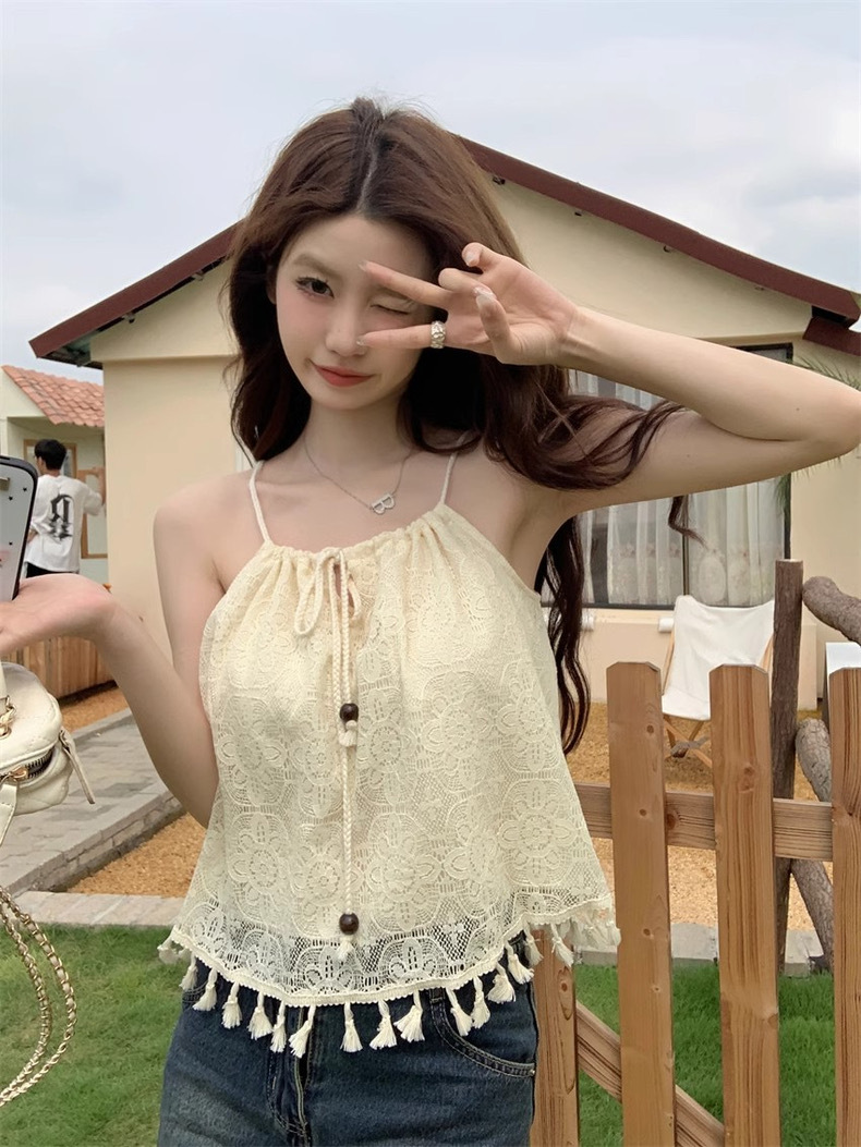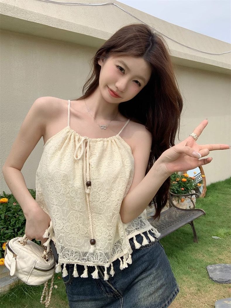 碎花流苏吊带背心外穿夏季薄款修身显瘦短款别致内搭无袖上衣女装