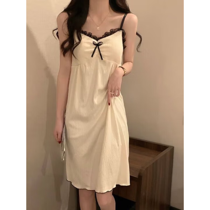 睡衣夏季女吊带睡裙梭织棉带胸垫女士