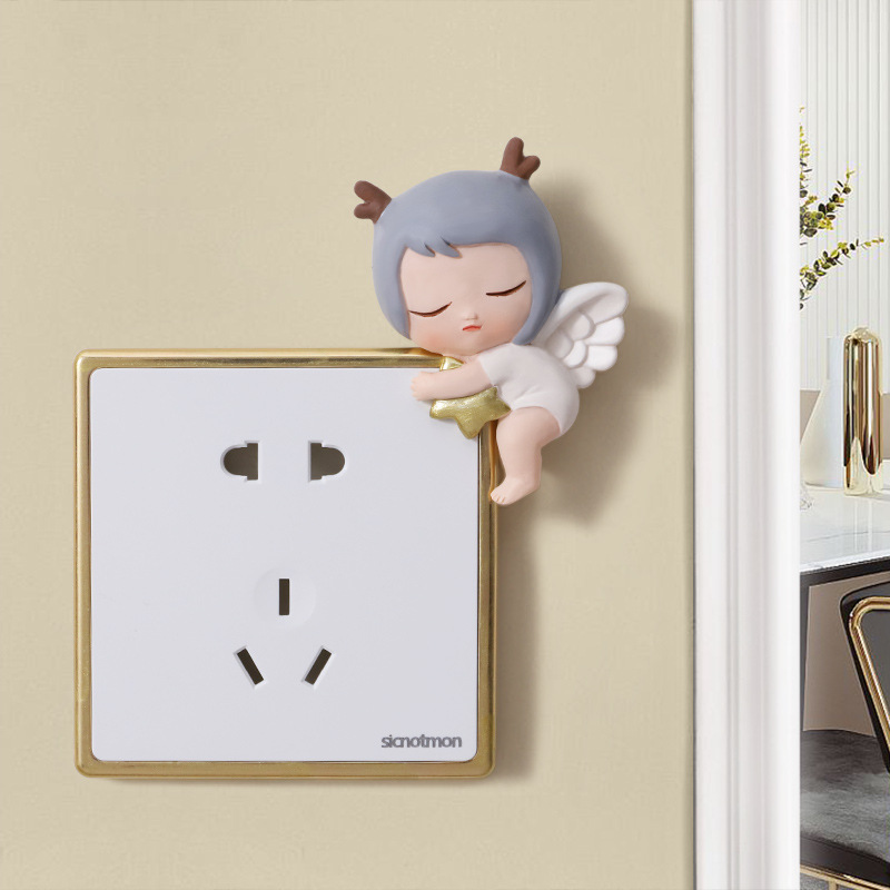 墙面开关板无框3D卡通立体树脂墙贴家居开关创意壁饰开关贴