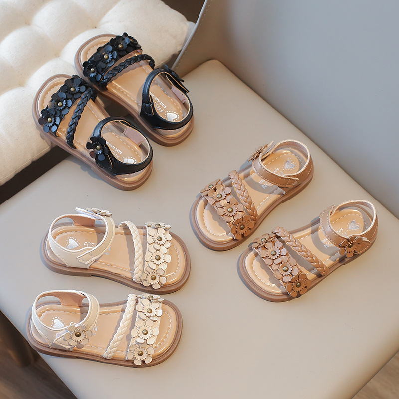 夏季新款女童编织凉鞋儿童花朵公主鞋中大童校园软底沙滩鞋