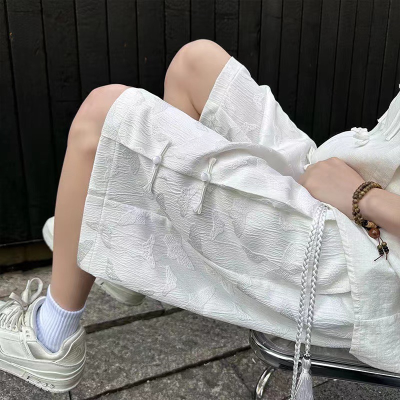 新中式男装短裤中国风冰丝白色设计感高级夏薄款居家睡裤五分裤子
