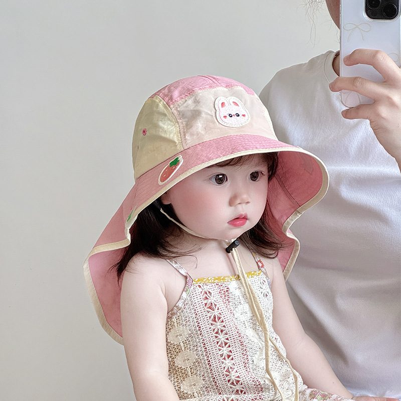 宝宝帽子春夏大檐遮阳帽男女童可爱带披肩护脖防晒帽户外太阳帽韩