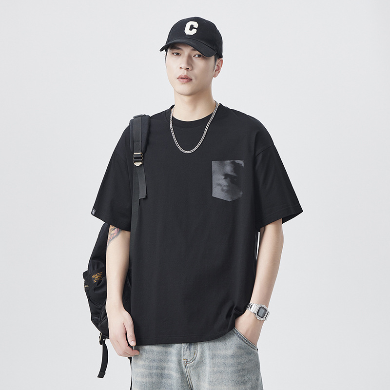 索罗娜凉感印花短袖T恤男2025夏季新款宽松大码肌理感五分袖体恤