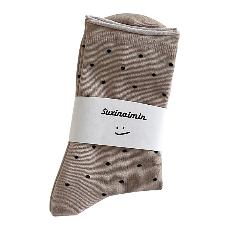 袜子男女春夏吸汗ins潮奶油系卷边点点中筒袜文艺月子