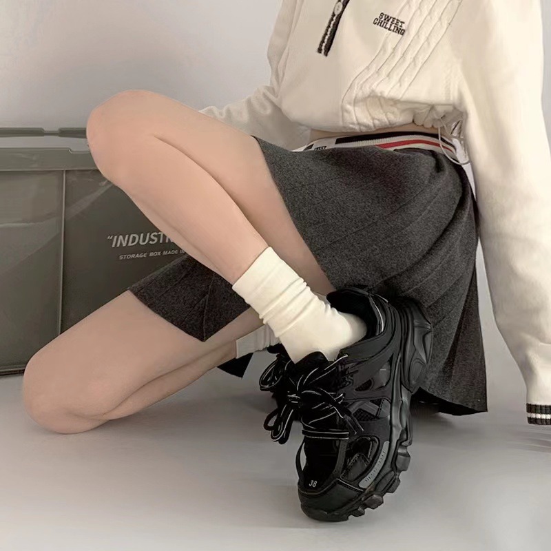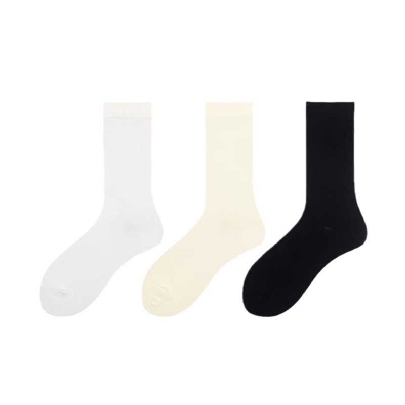 松口袜月子袜男女中筒纯棉袜夏季薄款ins潮黑白纯色堆堆袜