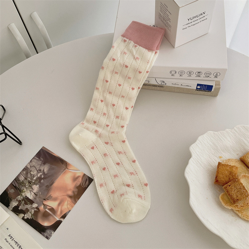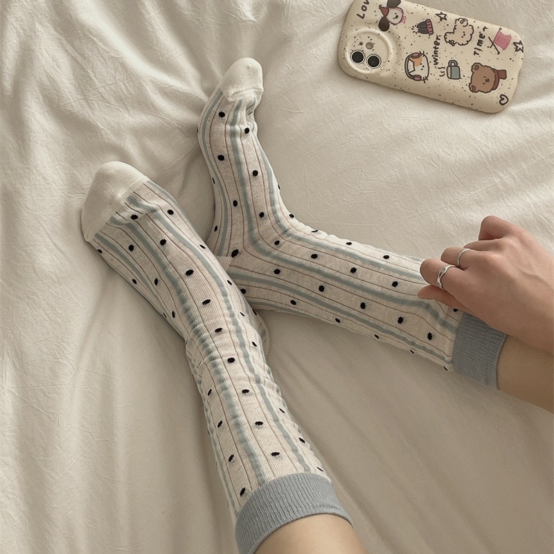 韩国东大门ins款爱心洛丽塔小腿堆堆袜 夏季透气薄款波点袜子