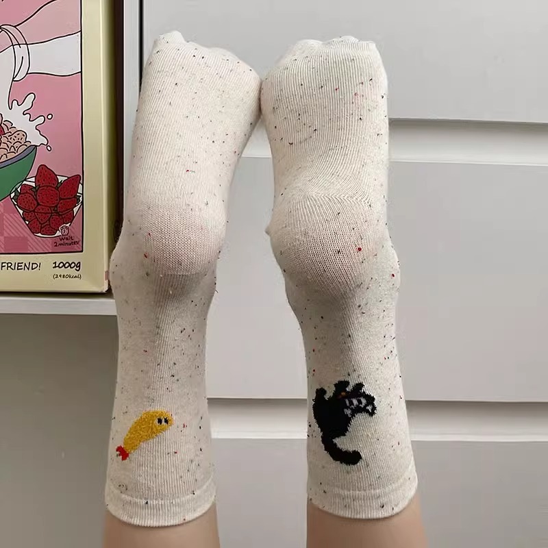 春夏袜子女中筒可爱卡通袜子女中筒袜日系小众设计感网红长袜纯棉