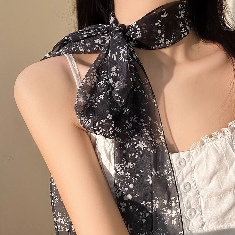 韩系氛围感复古碎花丝巾女2025年春夏新款长款围巾时髦系脖颈饰