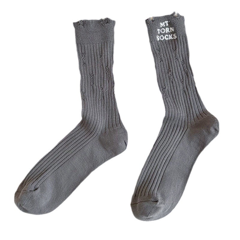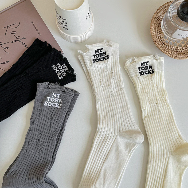 破洞袜子女ins风潮流堆堆袜女刺绣字母新款洞洞中筒袜子韩版棉袜