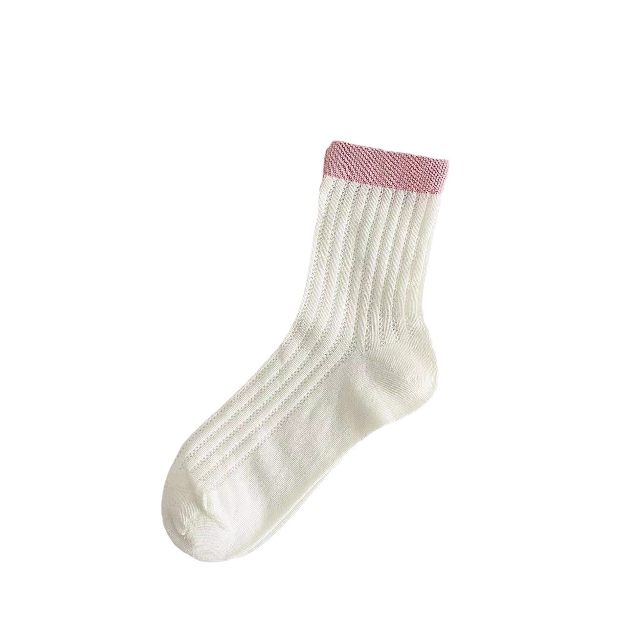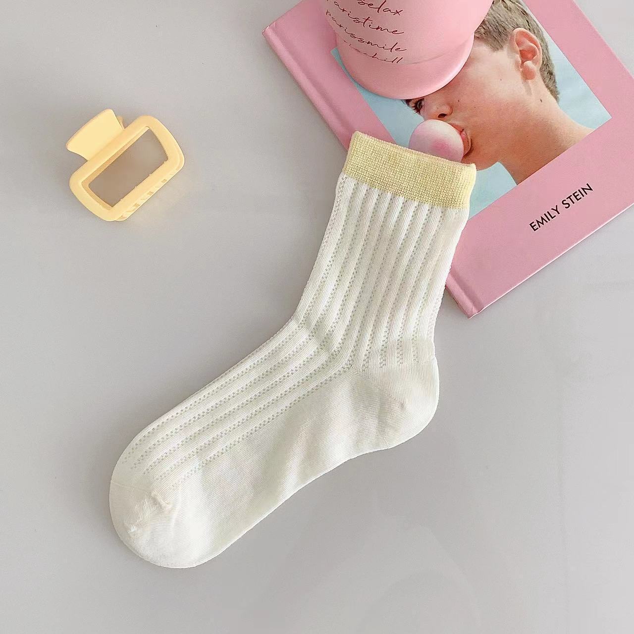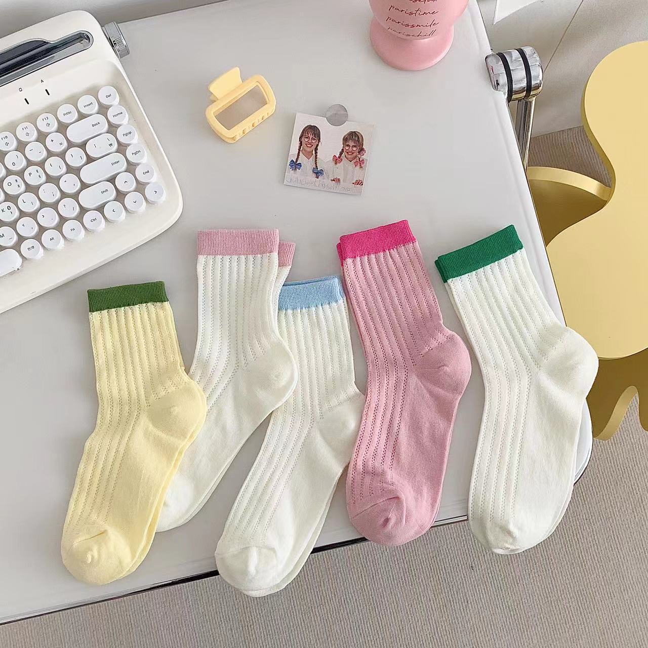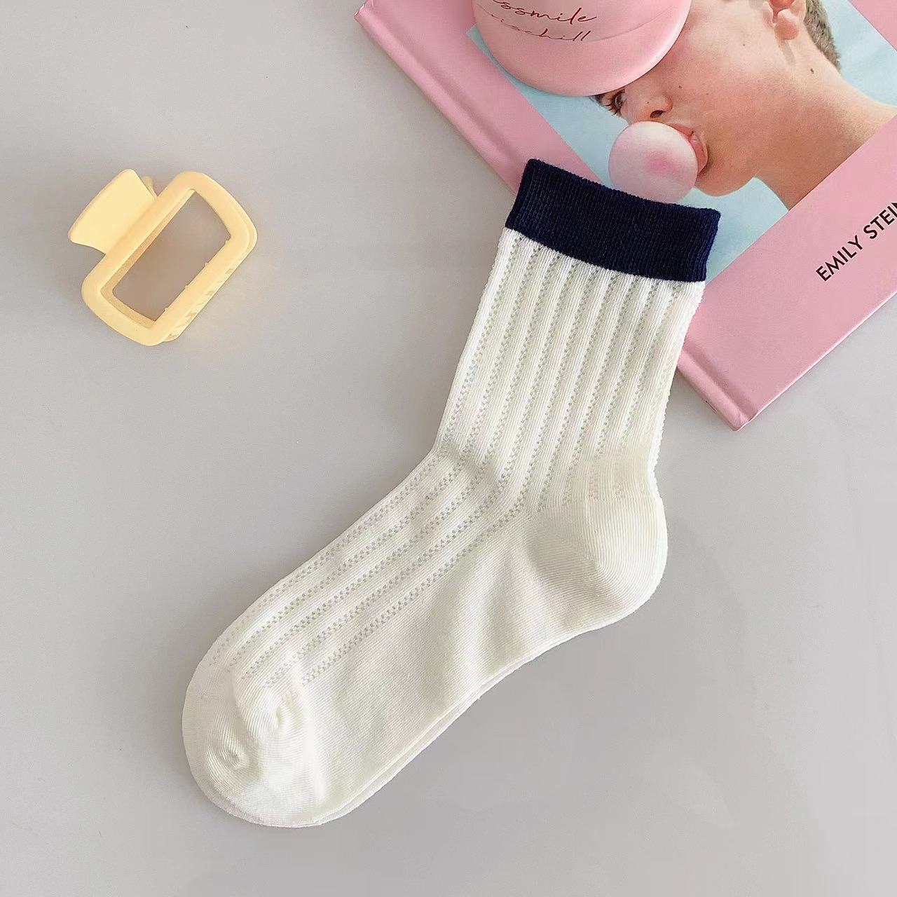 袜子女夏季薄款网眼透气中筒袜ins潮糖果色镂空简约拼色休闲棉袜