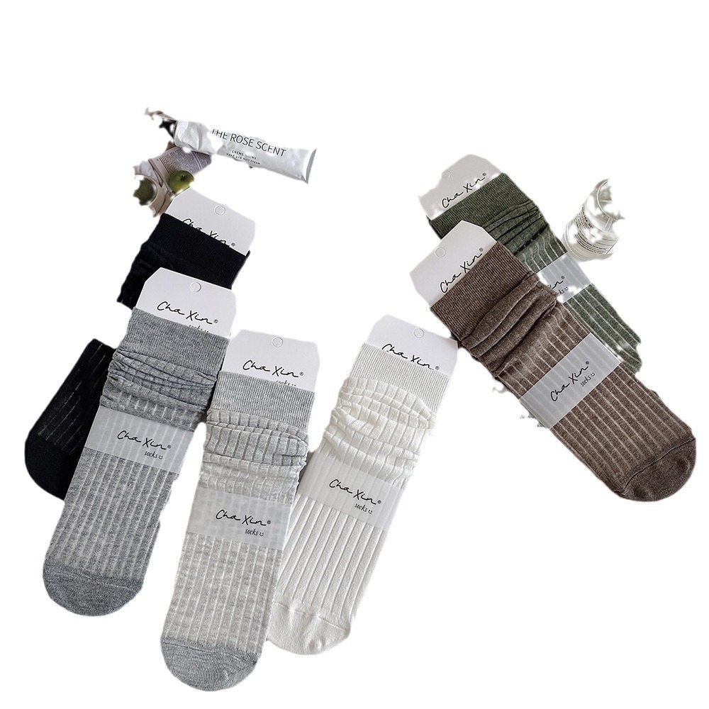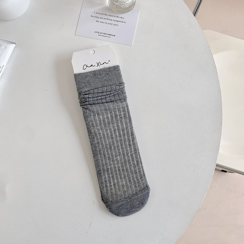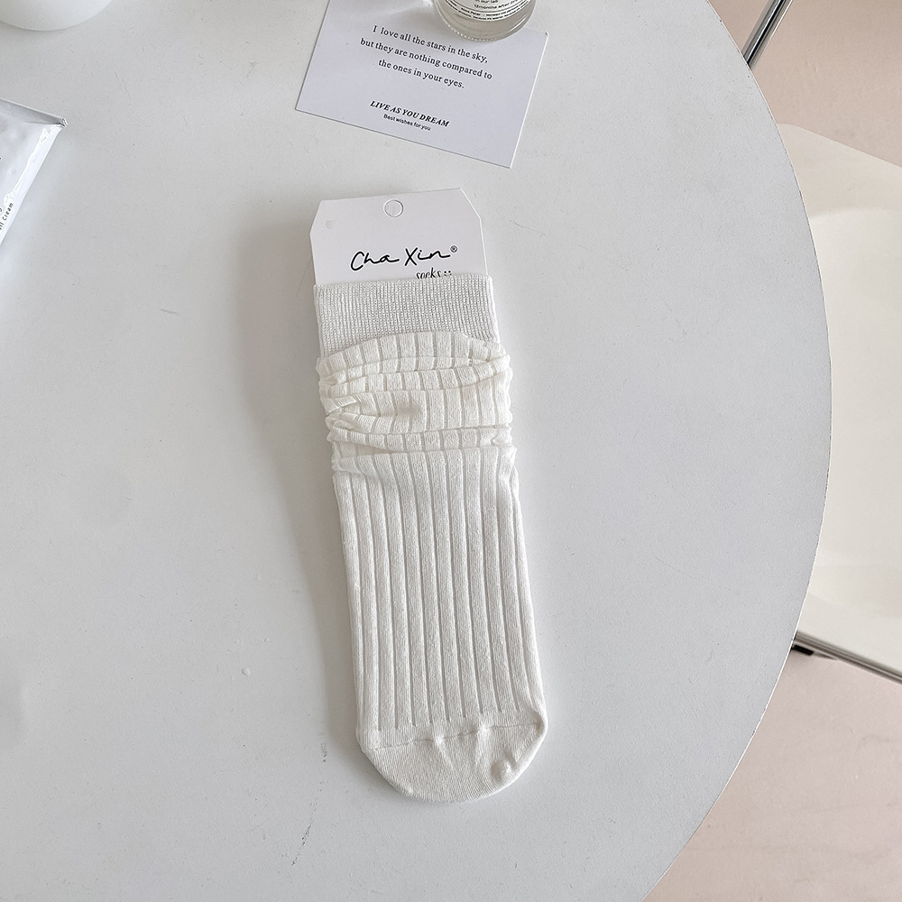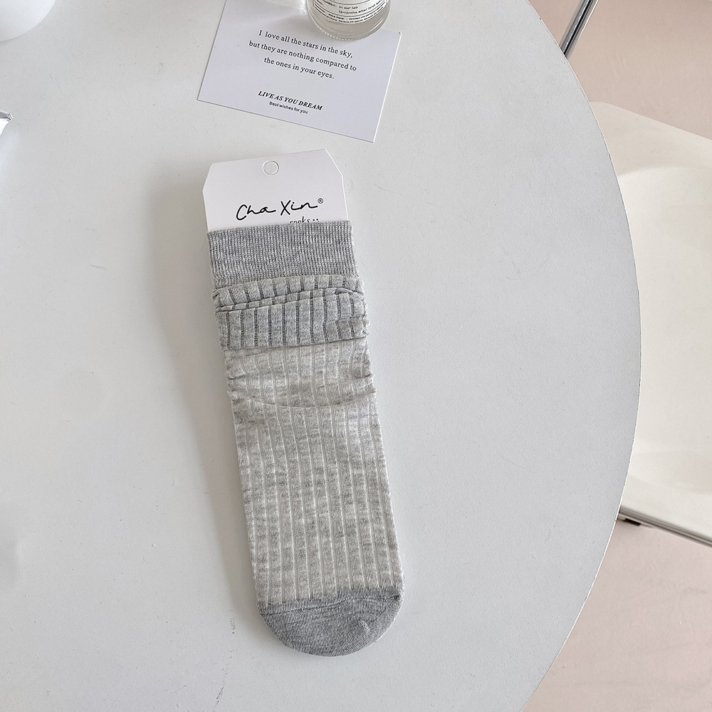 春夏袜子女薄款透气网眼纯色基础中筒堆堆袜学院风棉麻色女袜